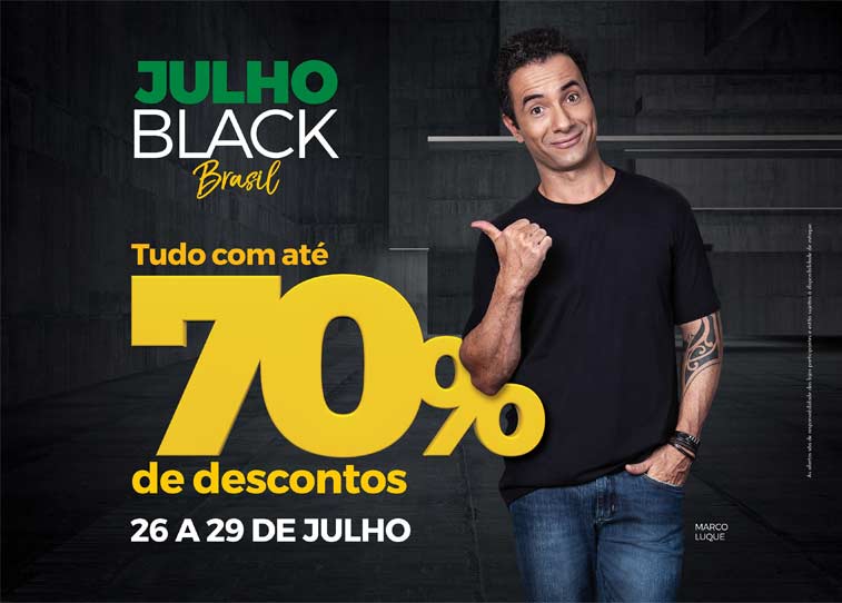 Shopping centers que participam da campanha ‘Julho Black Brasil’: Shopping Metrô Tatuapé e Shopping Metrô Boulevard Tatuapé, que formam o Complexo Tatuapé (São Paulo, SP); Atrium Shopping (Santo André, SP); Minas Shopping (Belo Horizonte, MG); Monet Plaza Shopping (Santa Maria, RS); Shopping Praça da Moça (Diadema, SP); Taubaté Shopping (Taubaté, SP); Pátio Limeira Shopping (Limeira, SP); Shopping Rio Claro (Rio Claro, SP); Marília Shopping (Marília, SP); Shopping Poços de Caldas (Poços de Caldas, MG); Shopping Píer 21 (Brasília, DF); Américas Shopping (Rio de Janeiro, RJ); West Shopping (Rio de Janeiro, RJ); Via Brasil Shopping (Rio de Janeiro, RJ); Center Shopping Rio (Rio de Janeiro, RJ); Shopping Pátio Chapecó (Chapecó, SC); Bauru Shopping (Bauru, SP); Tivoli Shopping (Santa Bárbara d’Oeste, SP); Shopping Pelotas (Pelotas, RS); Shopping Pátio Belém (Belém, PA); Shopping Pátio Pinda (Pindamonhangaba, SP); Shopping Cidade dos Lagos (Guarapuava, PR); Nilópolis Square Shopping (Nilópolis, RJ); Millennium Shopping (Manaus, AM); e Sider Shopping (Volta Redonda, RJ).